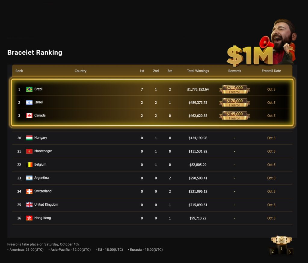 | Sep 8 | Mon | 18:00 | #17: $1,500 MILLIONAIRE MAKER - $1M for 1st [Day 2] | $1,500 | $5,000,000 |