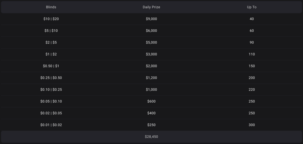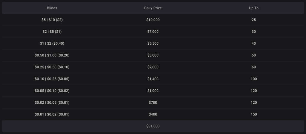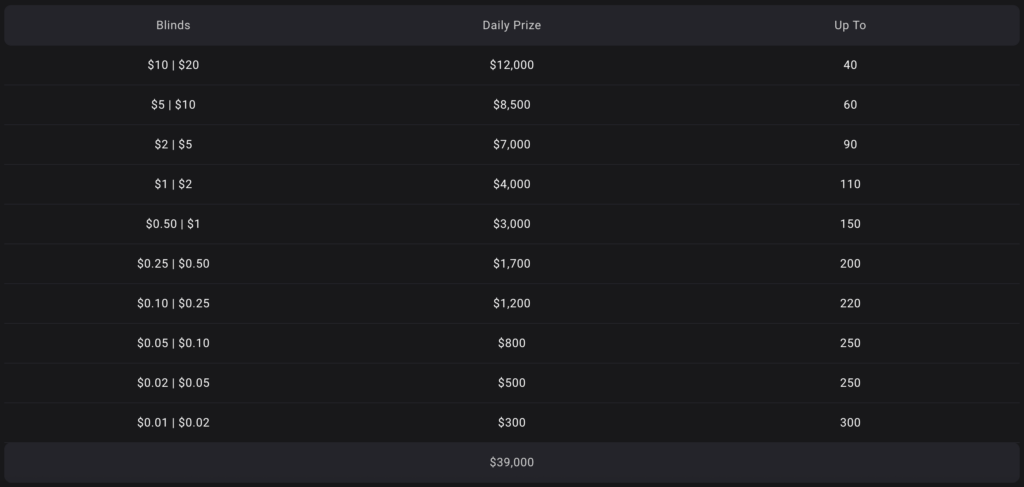 Points will only be accumulated across the stakes and blinds featured on the promotional leaderboards.