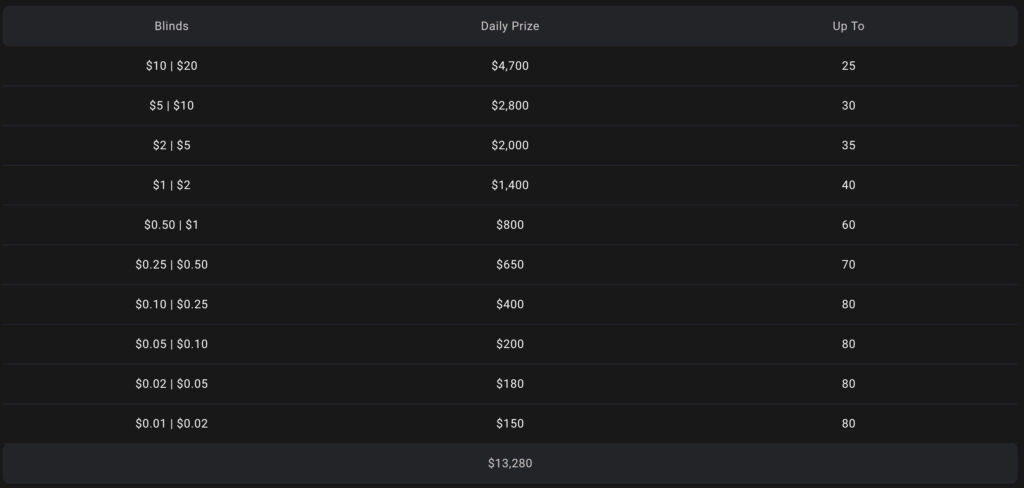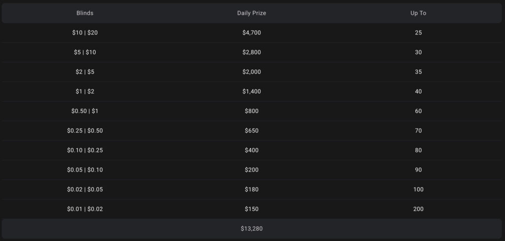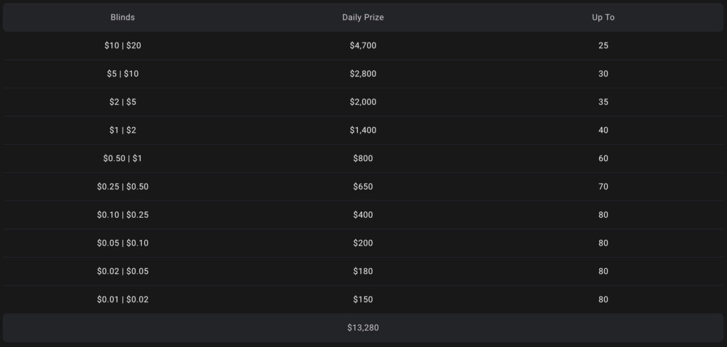 Points will only be accumulated across the stakes and blinds featured on the promotional leaderboards.