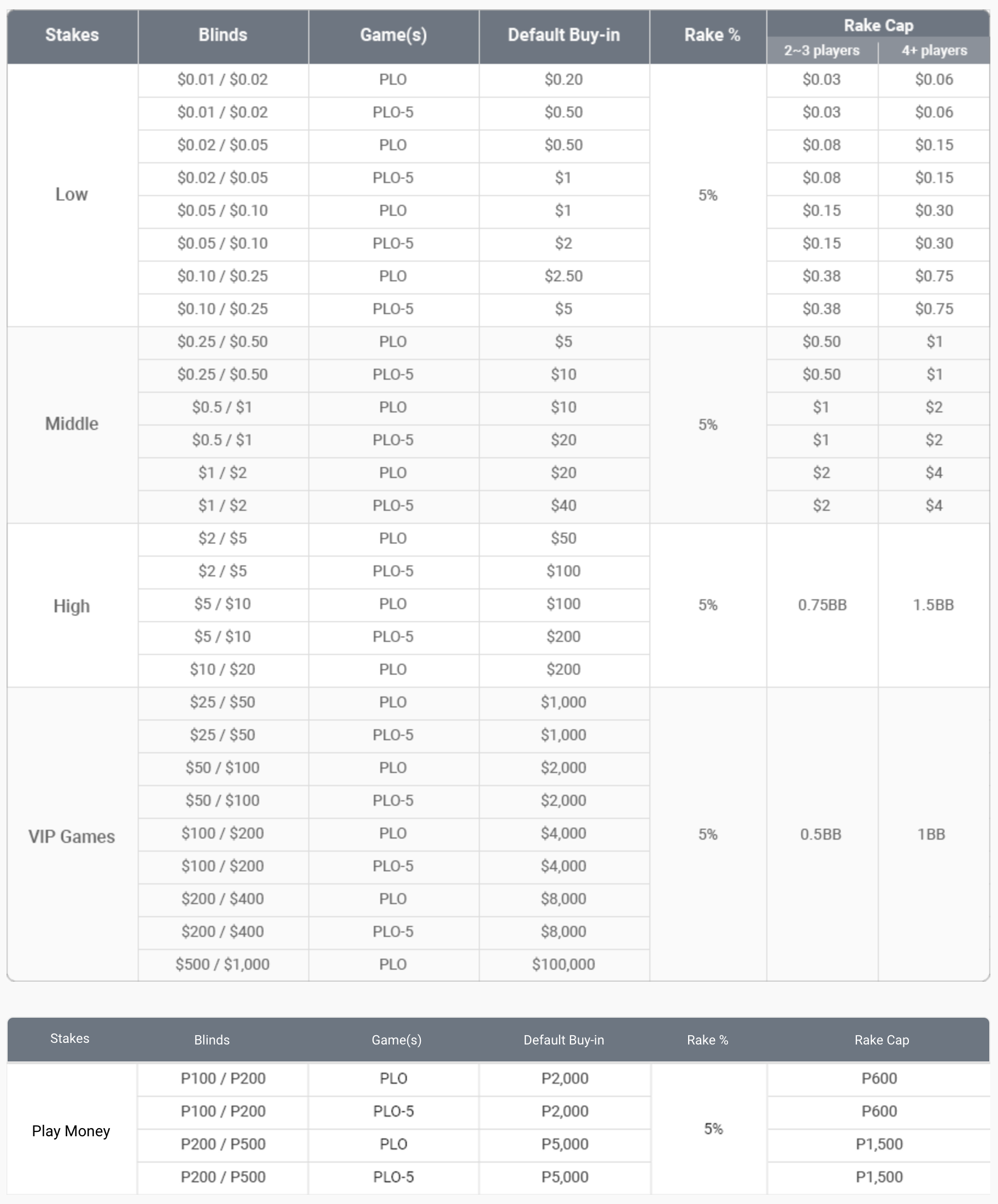 Hold’em, PLO, PLO-5, Rush & Cash Hold’em and Rush & Cash PLO