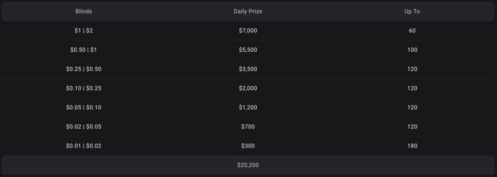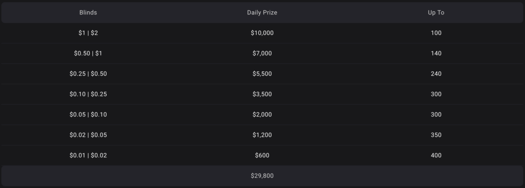 Points will only be accumulated across the stakes and blinds featured on the promotional leaderboards.